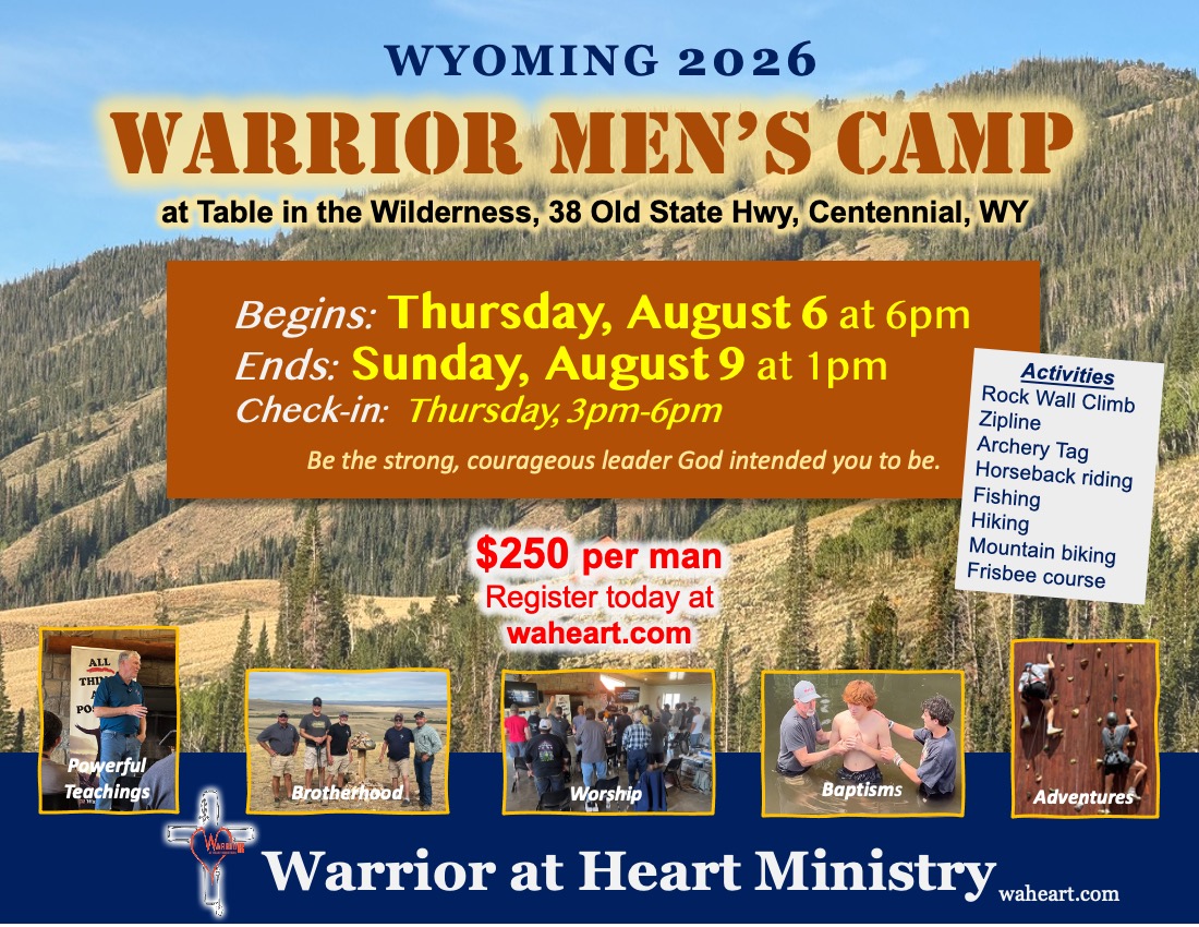 Men’s Boot Camp – Table in the Wilderness Resort in Wyoming – August 6-9, 2026